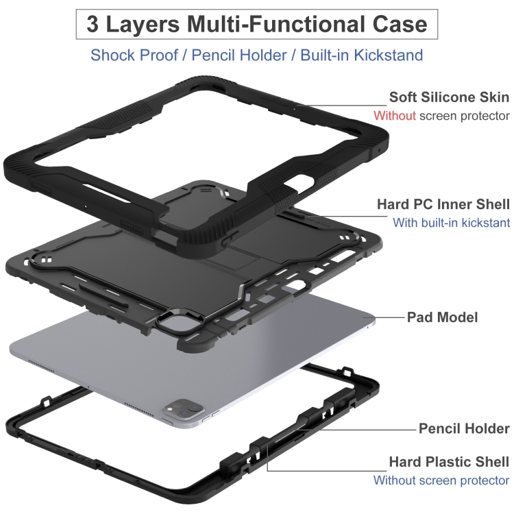 Funda para Tableta iPad Pro 13 2024 Híbrida Silicona a Prueba de Golpes con Soporte (Negro)