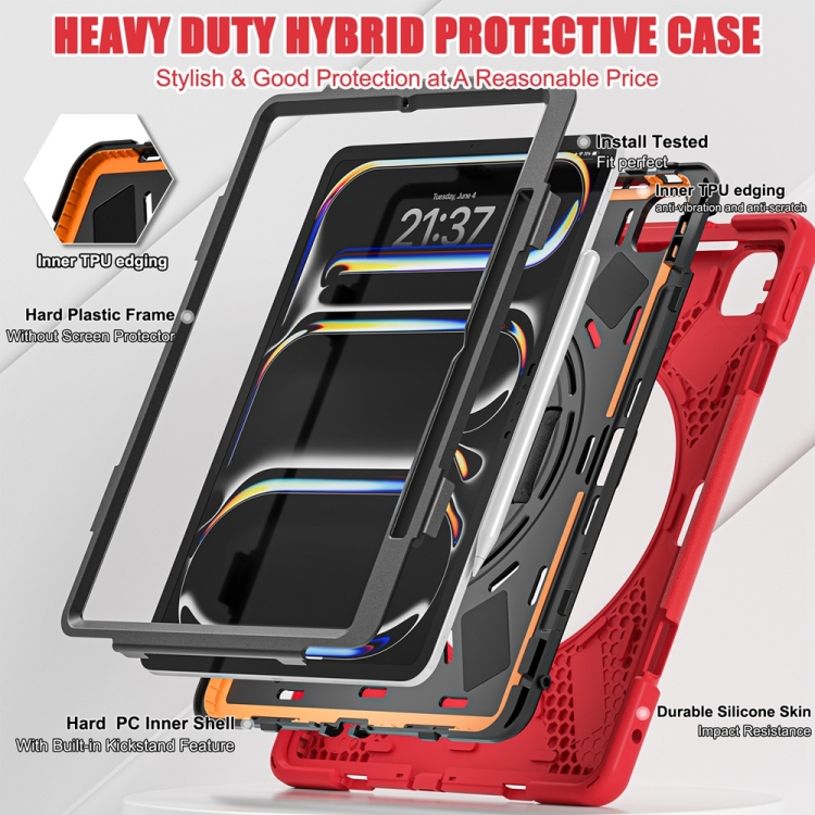 Funda para Tableta iPad Pro 13 2024 Híbrida Silicona Soporte Giratorio Agarre (Rojo)