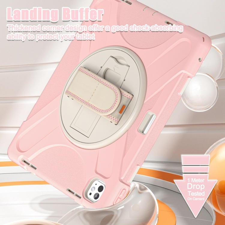 Funda para Tableta iPad Pro 13 2024 Híbrida de Silicona con Soporte Giratorio y Correa para El Hombro (Rosa Flor de Cerezo)