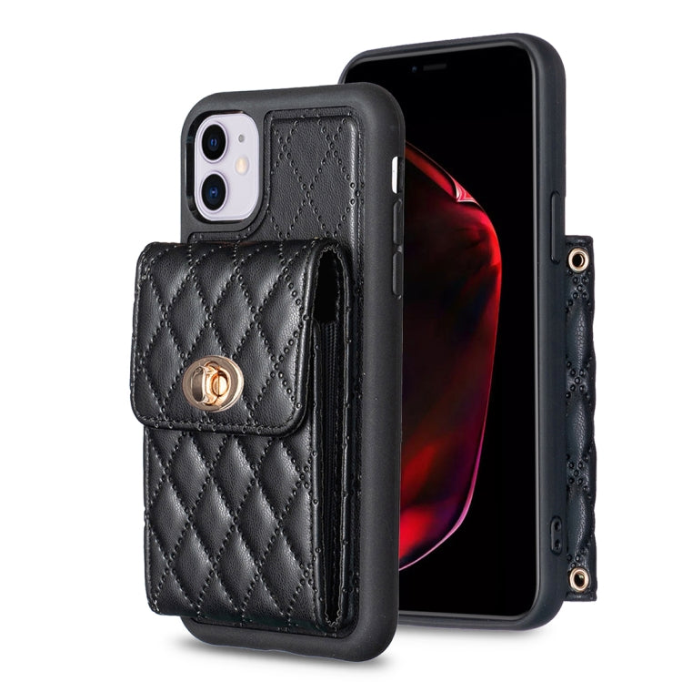 Caja de Teléfono de Cuero Rómbica para iPhone 11 Billetera con Hebilla de Metal Vertical (Negro)