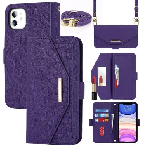 Funda para iPhone 11 Cross Texture Lanyard Leather Phone Case (Púrpura)