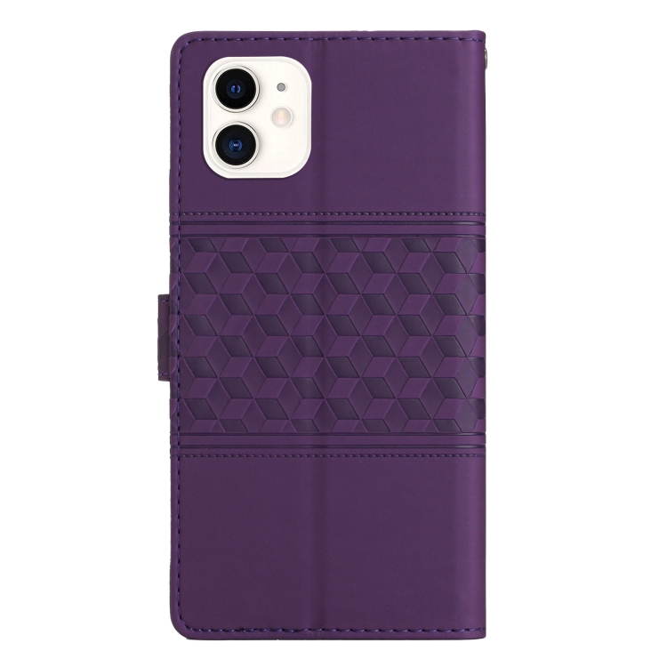 Funda de Cuero para iPhone 11 Diamond Embossed Skin Feel con Cordón (Púrpura)