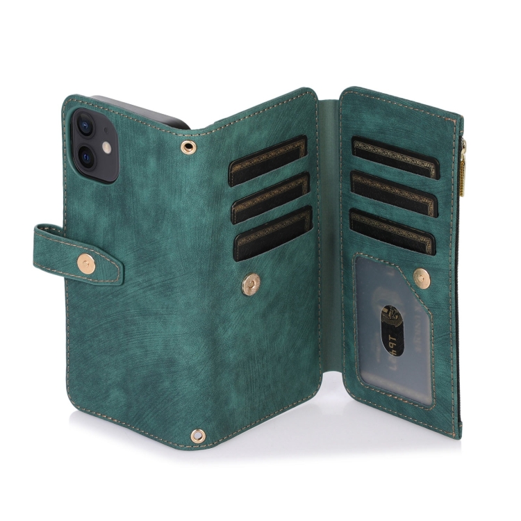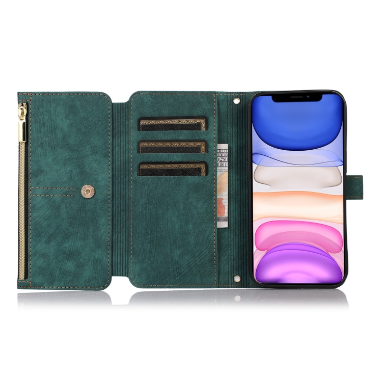 Funda para Teléfono iPhone 11 Dream 9-Card Wallet Zipper Bag de Cuero (Verde)