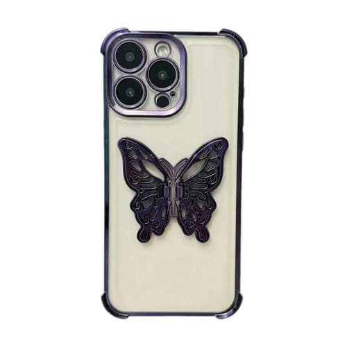Estuche para teléfono TPU iPhone 11 con soporte mariposa 3D galvanizado (Púrpura)