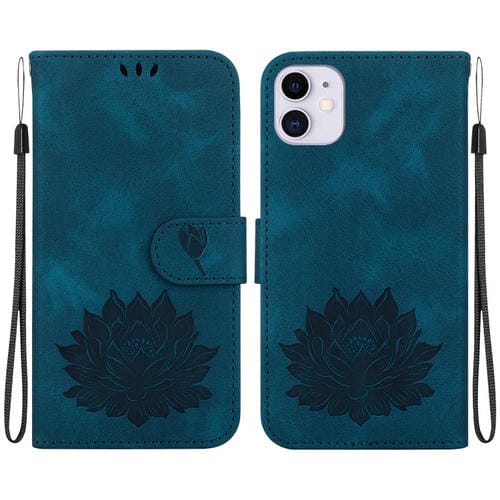 Funda para iPhone 11 Cuero con Relieve de Loto (Azul Oscuro)