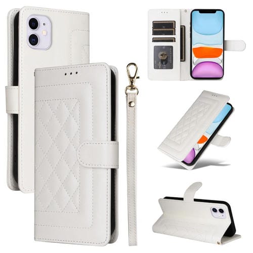 Funda de Teléfono para iPhone 11 con Tapa de Cuero Diamond Lattice (Blanco)