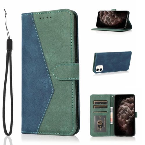 Funda de Teléfono iPhone 11 Cuero con Costuras de Dos Colores (Azul Verde)