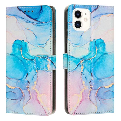 Funda de Teléfono iPhone 11 Cuero con Patrón de Mármol Pintado (Rosa Verde)
