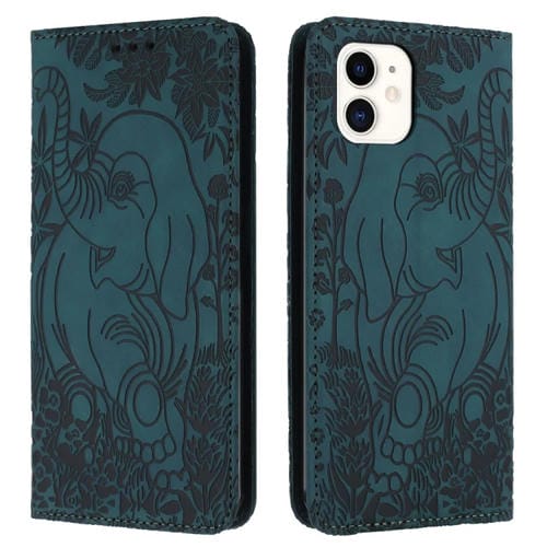 Funda de Teléfono iPhone 11 Cuero Relieve Elefante Retro (Verde)
