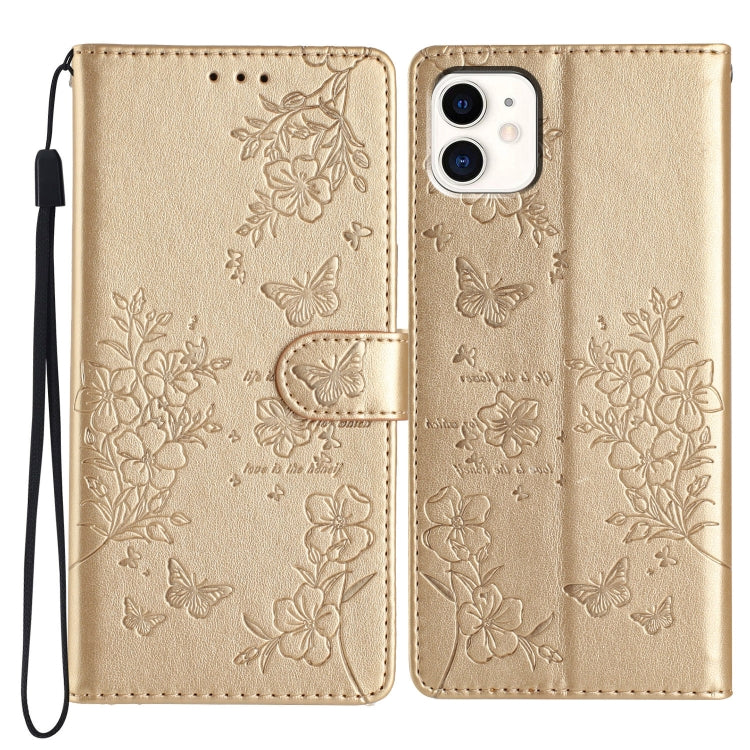 Funda para Teléfono iPhone 11 Cuero con Relieve Flor de Amor y Mariposa (Dorado)