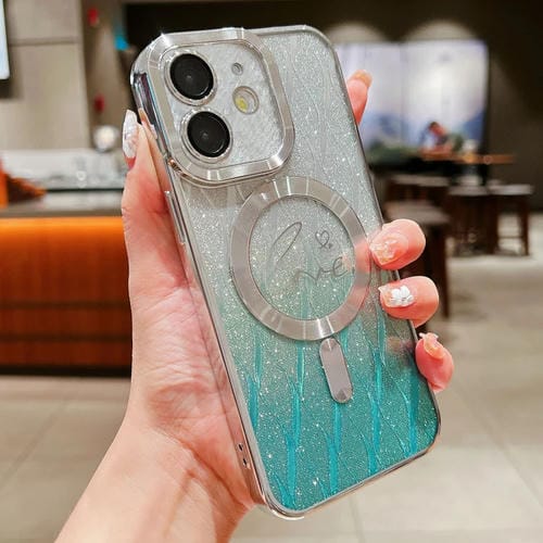 Estuche para teléfono iPhone 11 Magsafe Dual-Love Leaves TPU con brillo degradado (Verde)