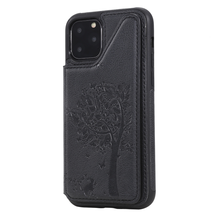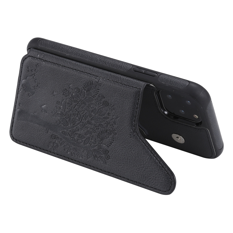 Estuche Protector iPhone 11 Pro Cat Tree Embossing a Prueba de Golpes con Ranuras para Tarjetas y Soporte (Negro)