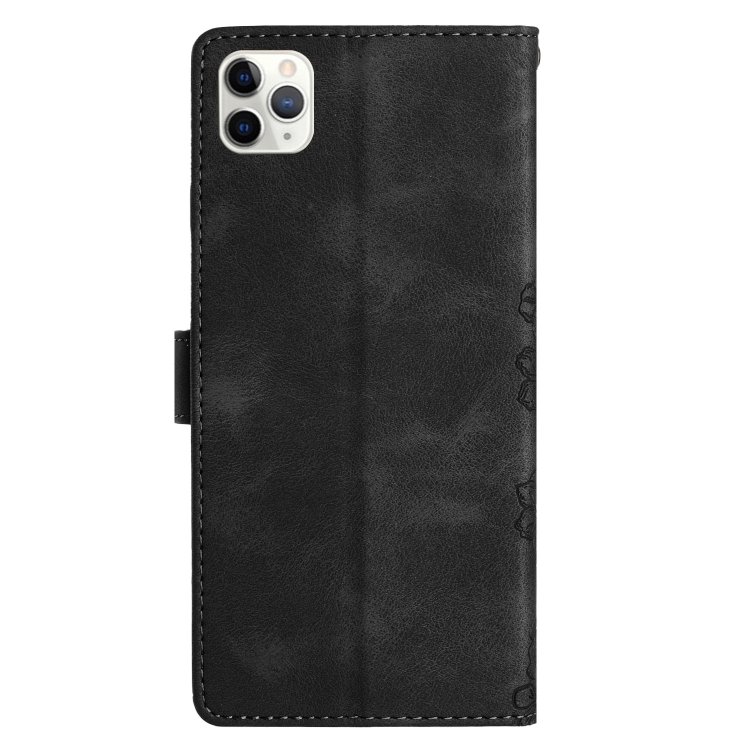 Funda para teléfono iPhone 11 Pro Cherry Blossom Butterfly Skin Feel de PU en relieve (Negro)