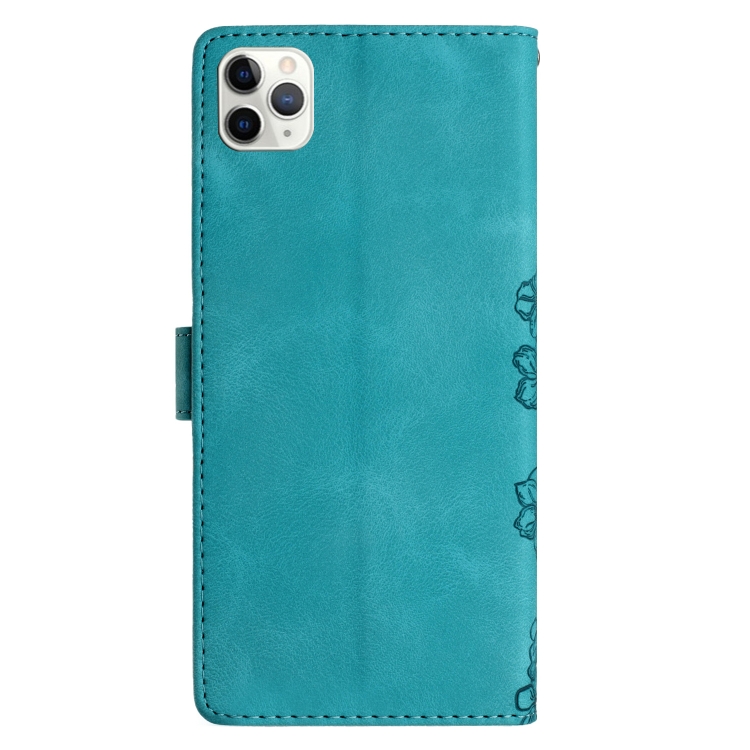 Funda para Teléfono iPhone 11 Pro Cherry Blossom Butterfly Skin Feel de PU en Relieve (Verde)