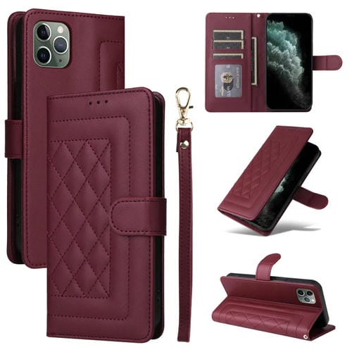 Funda para iPhone 11 Pro Diamond Lattice Cuero con Tapa (Rojo Vino)