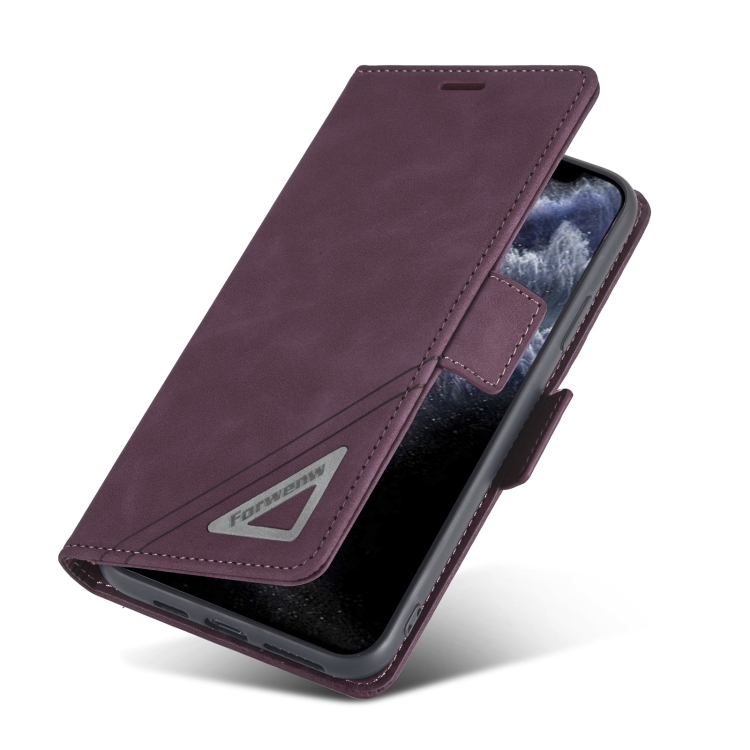 Funda de Cuero FoRWenw para iPhone 11 Pro con Hebilla de Doble Cara (Rojo Vino)