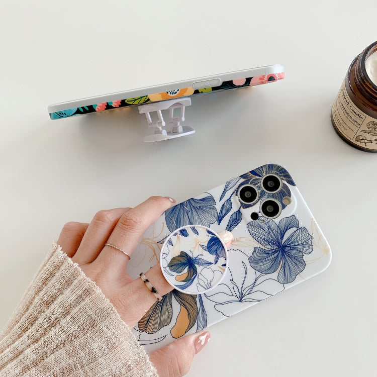 Funda TPU para iPhone 11 Pro Frusted Flowers Pattel con Soporte Plegable (Negro)