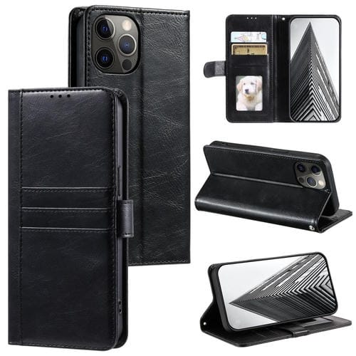Funda de Cuero para Teléfono iPhone 11 Pro con Billetera para 6 Tarjetas (Negro)