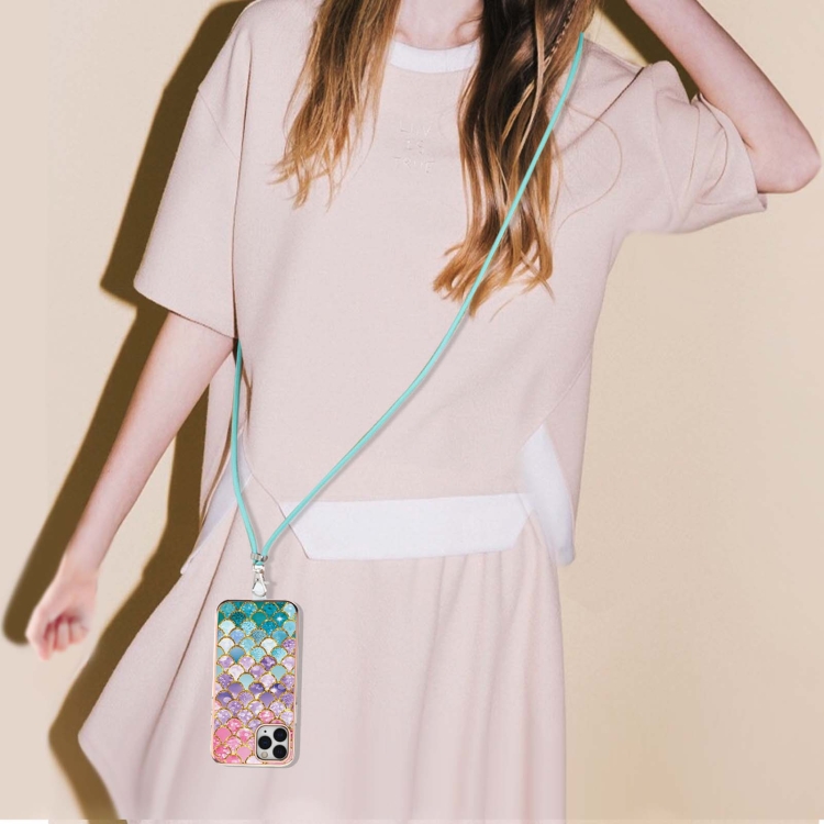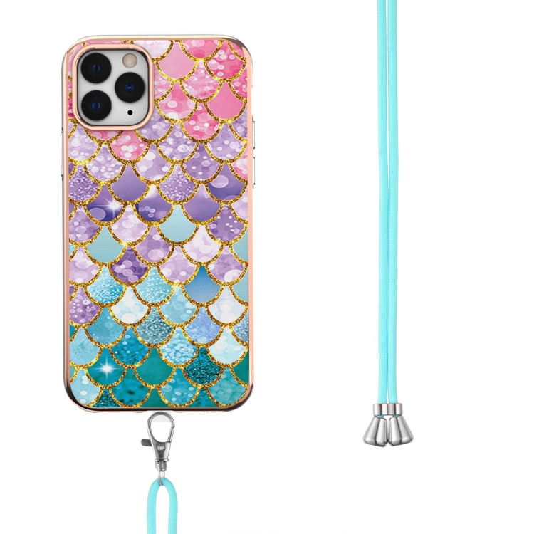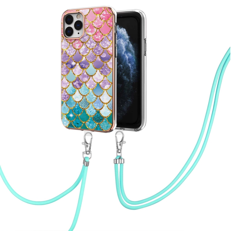 Estuche TPU iPhone 11 Pro Galvanoplastia Patrón Imd a Prueba de Golpes con Cordón (Escamas de Colores)