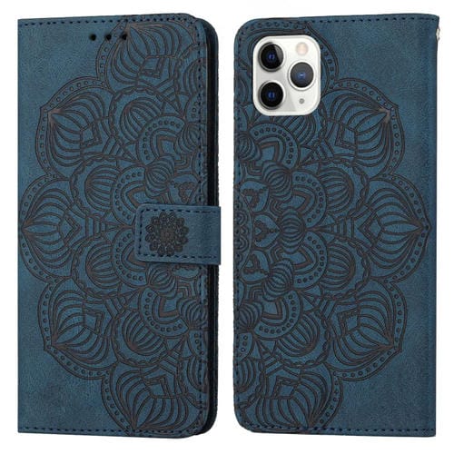 Funda de Cuero para iPhone 11 Pro Mandala con Tapa En Relieve (Azul)
