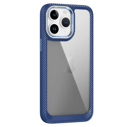 Caja del Teléfono para iPhone 11 Pro Max Fibra de Carbono Panel Trasero Transparente (Azul)