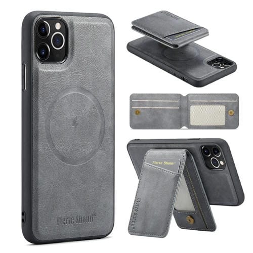 Funda para Teléfono Fierre Shann iPhone 11 Pro Max Oil Wax con Tarjetero Magnético de Cuero de Vaca (Gris)