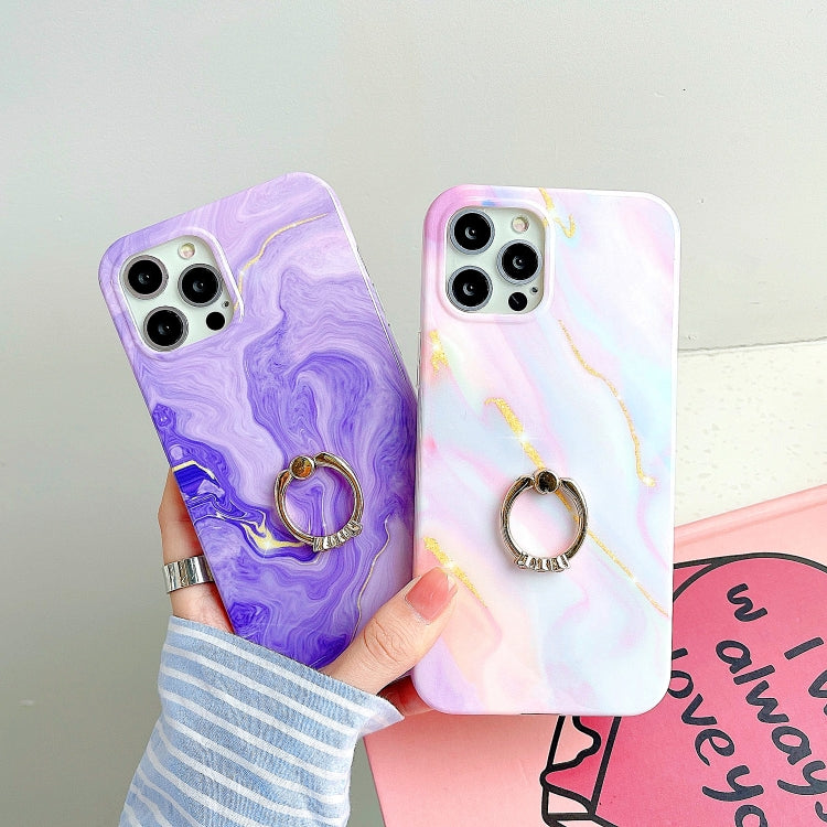 Funda para iPhone 11 Pro Max Mármol Acristalado Espesó con Soporte de Anillo Metálico (Verde)