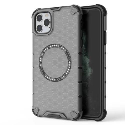 Funda para Teléfono iPhone 11 Pro Max Honeycomb Magnetic Ring a Prueba de Golpes (Negro)