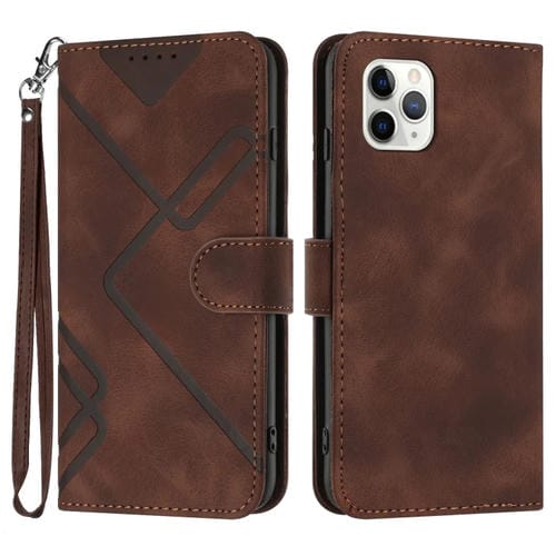 Funda para iPhone 11 Pro Max Line Pattern Skin Feel Cuero (Café)