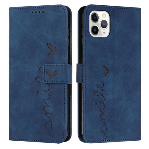 Funda para Teléfono iPhone 11 Pro Max Skin Feel Heart Pattern Cuero (Azul)