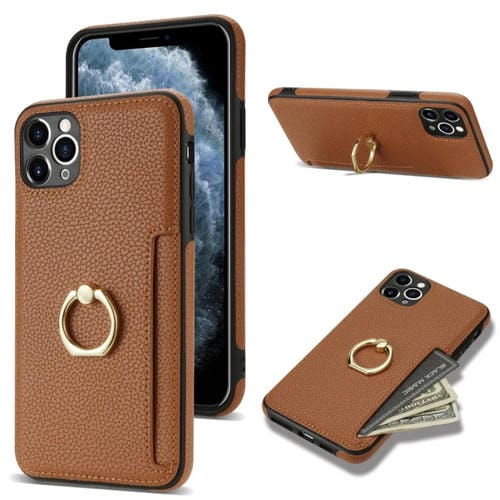 Funda Trasera para iPhone 11 Pro Ring Card Litchi Cuero (Marrón)