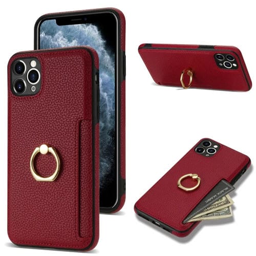 Funda Trasera para iPhone 11 Pro Ring Card Litchi de cuero (Rojo)