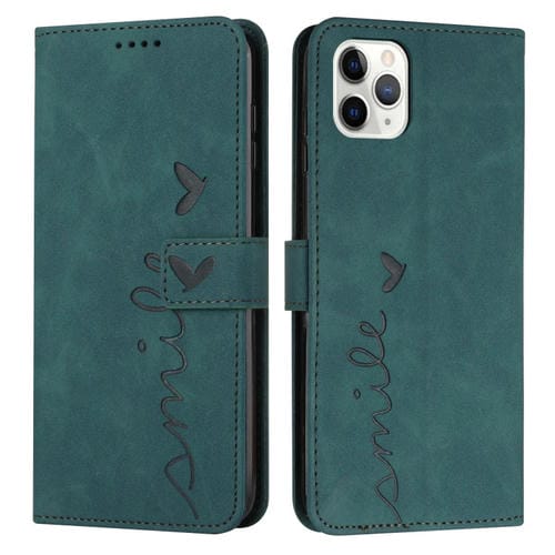 Funda de Cuero para Teléfono iPhone 11 Pro Skin Feel Heart Pattern (Verde)