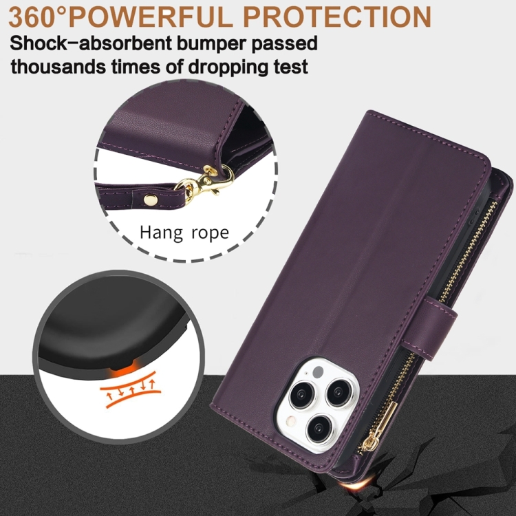 Funda para Teléfono iPhone 11 Pro Ym016 Billetera Cuero Cremallera Rómbica Cordón (Púrpura Oscuro)