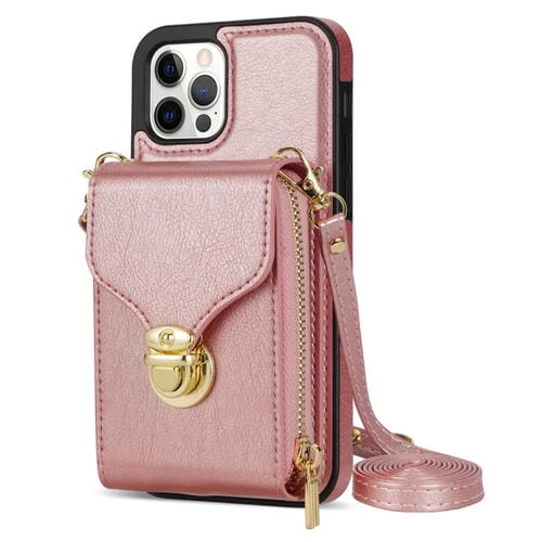Funda para iPhone 12/12 Pro con Cremallera Hardware Card Wallet (Oro Rosa)