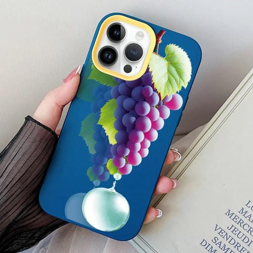 Funda de teléfono híbrida TPU PC para iPhone 12 12 Pro con patrón de uva (Azul Real)
