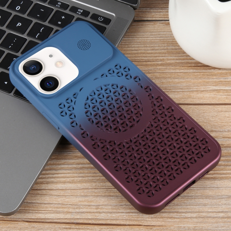 Funda Magnética para Teléfono iPhone 12 Aromaterapia Enfriamiento de Panal (Azul Rojo)
