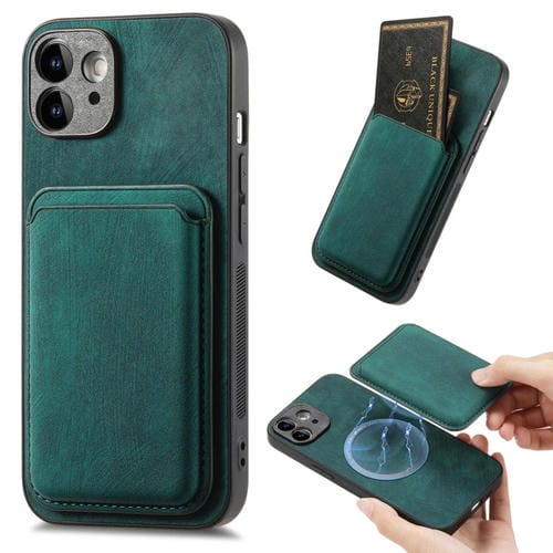 Funda magnética para teléfono iPhone 12 con bolsa de tarjeta de cuero retro (Verde)