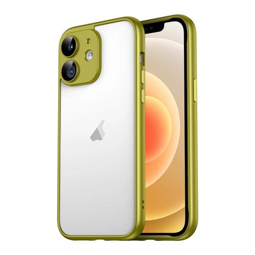Carcasa para iPhone 12 Macaron PC Marco de Borde Puro con Película de Vidrio para Lentes (Verde)