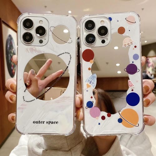 Caja de teléfono para iPhone 12 Mini con Espejo Pintado a Color (Espacio Exterior)