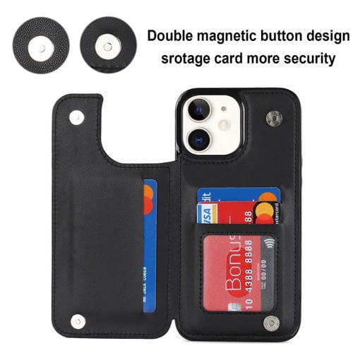 Funda de teléfono para iPhone 12 Mini Cuero PU Doble Hebilla (Negro)