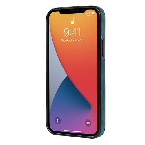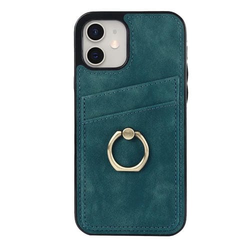 Funda de Cuero para iPhone 12 Mini con Parche Vintage y Soporte para Anillo (Azul)