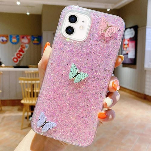 Funda para Teléfono TPU Epoxi iPhone 12 Mini con Lentejuelas Estrelladas y Diamantes de Imitación (Rosa)