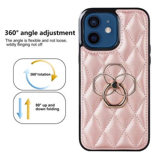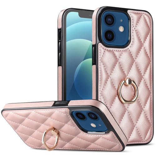 Funda para iPhone 12 Mini Rhombic PU Cuero con Soporte para Anillo (Oro Rosa)