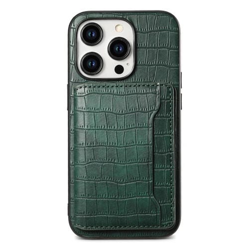 Estuche para Teléfono iPhone 12 Pro 12 Diseño Bolsa para Tarjetas Textura de Cocodrilo (Verde)