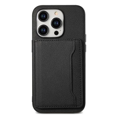 Estuche para Teléfono iPhone 12 Pro / 12 con Diseño de Bolsa para Tarjetas y Textura de Pantorrilla (Negro)