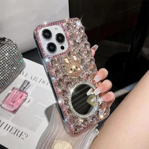 Funda para Teléfono iPhone 12 Pro Diamond Mirror Bunny Hecha a Mano para PC (Espejo Rosa)