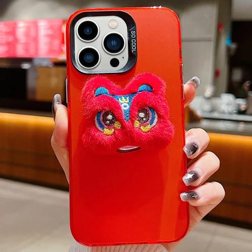 Funda para Teléfono iPhone 12 Pro Muñeco de Peluche Danza del León Año Nuevo (León Rojo con Espalda Roja)