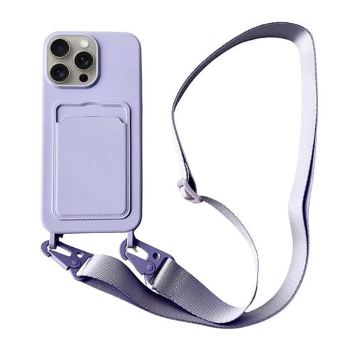 Funda para Teléfono iPhone 12 Pro Silicona Líquida con Ranura para Tarjeta y Cordón (Púrpura Claro)