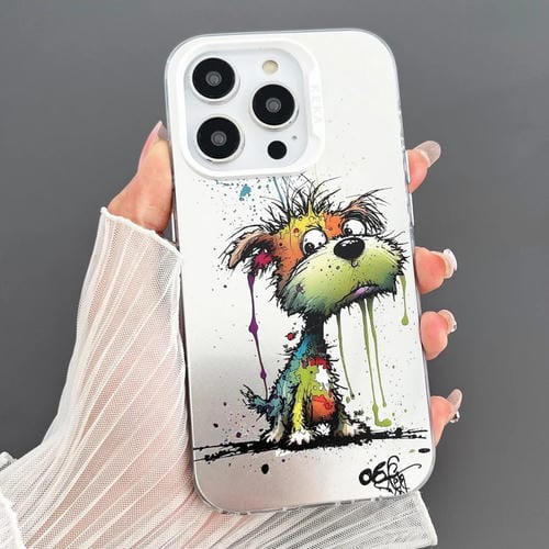 Funda para Teléfono iPhone 12 Pro Imd Animal Graffiti TPU + PC Doble Cara (Perro Naranja Verde)